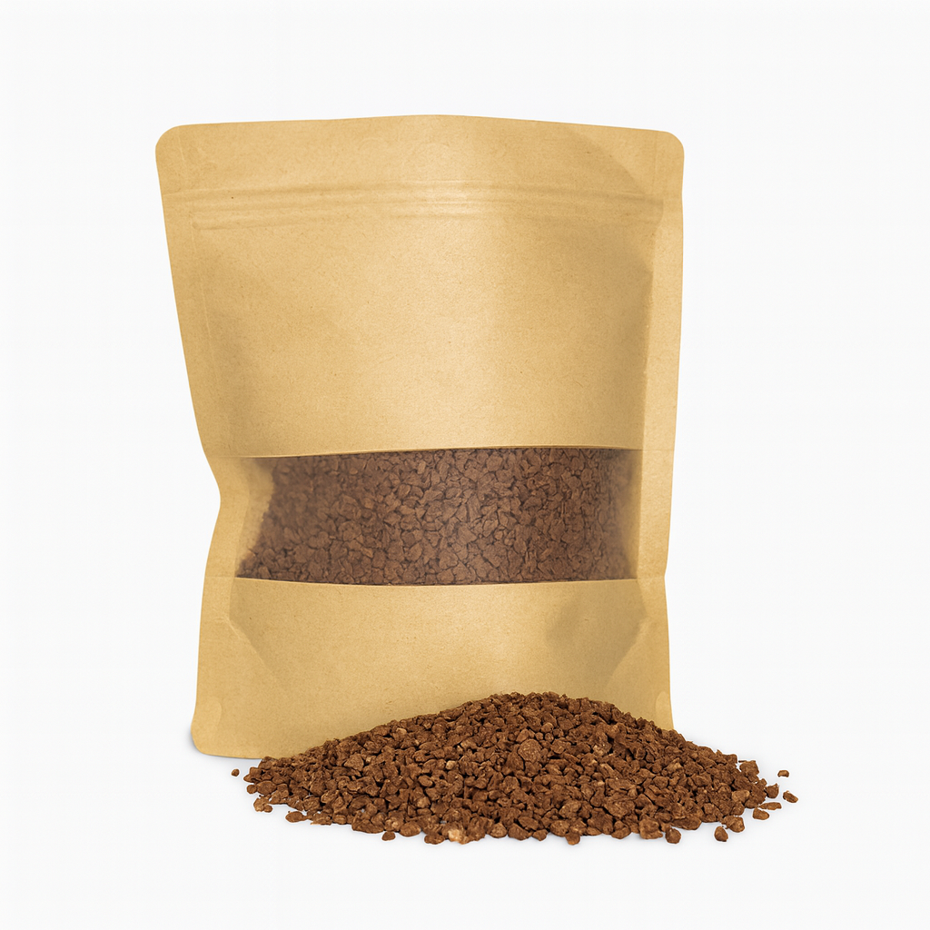 Hueso de aceituna triturado, natural y sin aditivos, perfecto para crear bandejas de forrajeo y estimular el comportamiento natural de búsqueda en aves.